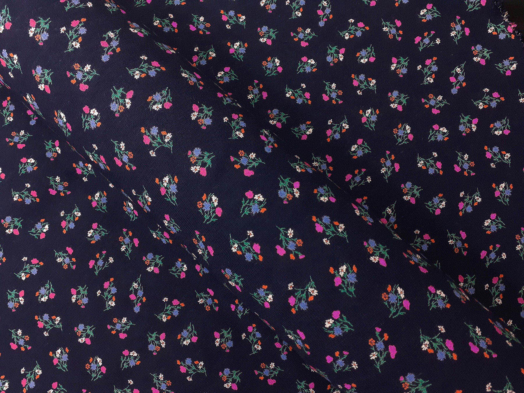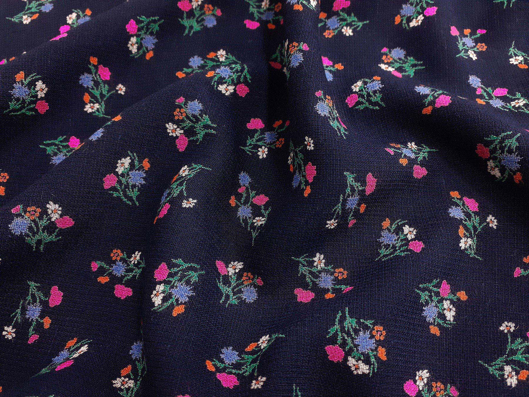 Tessuto in lino e viscosa fantasia floreale fondo blue