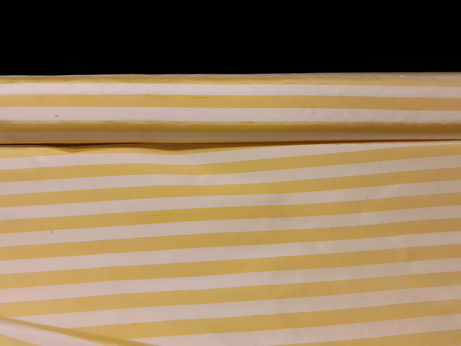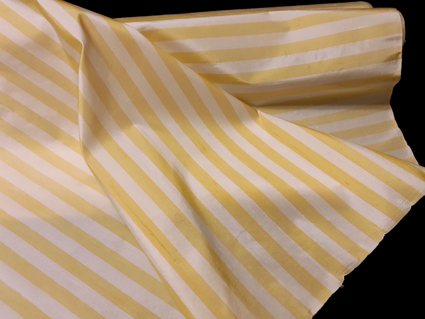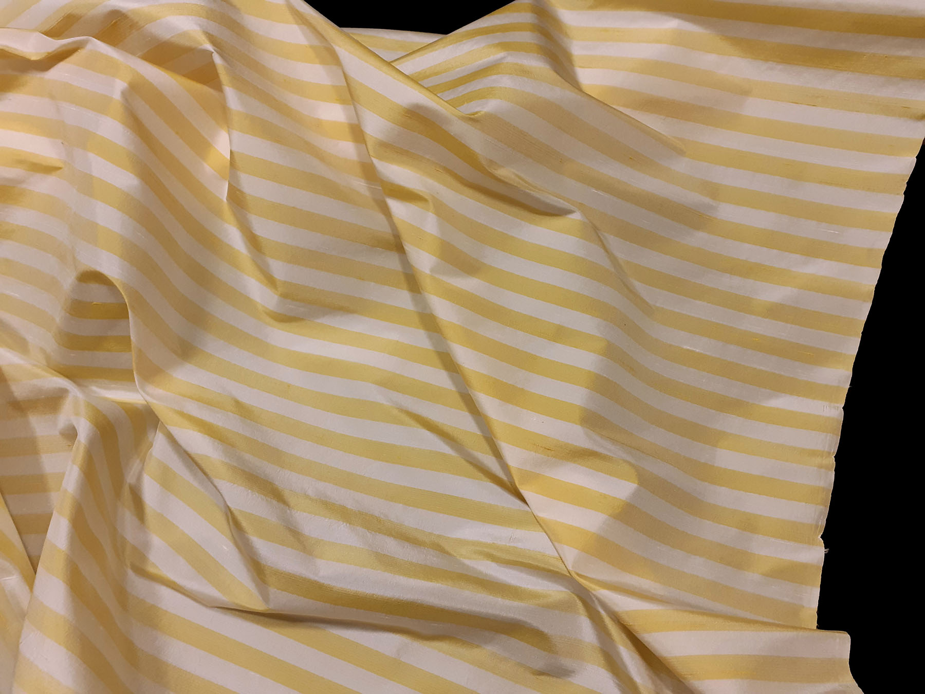 Seta Shantung a righe giallo chiaro e bianco. Setificio Taroni