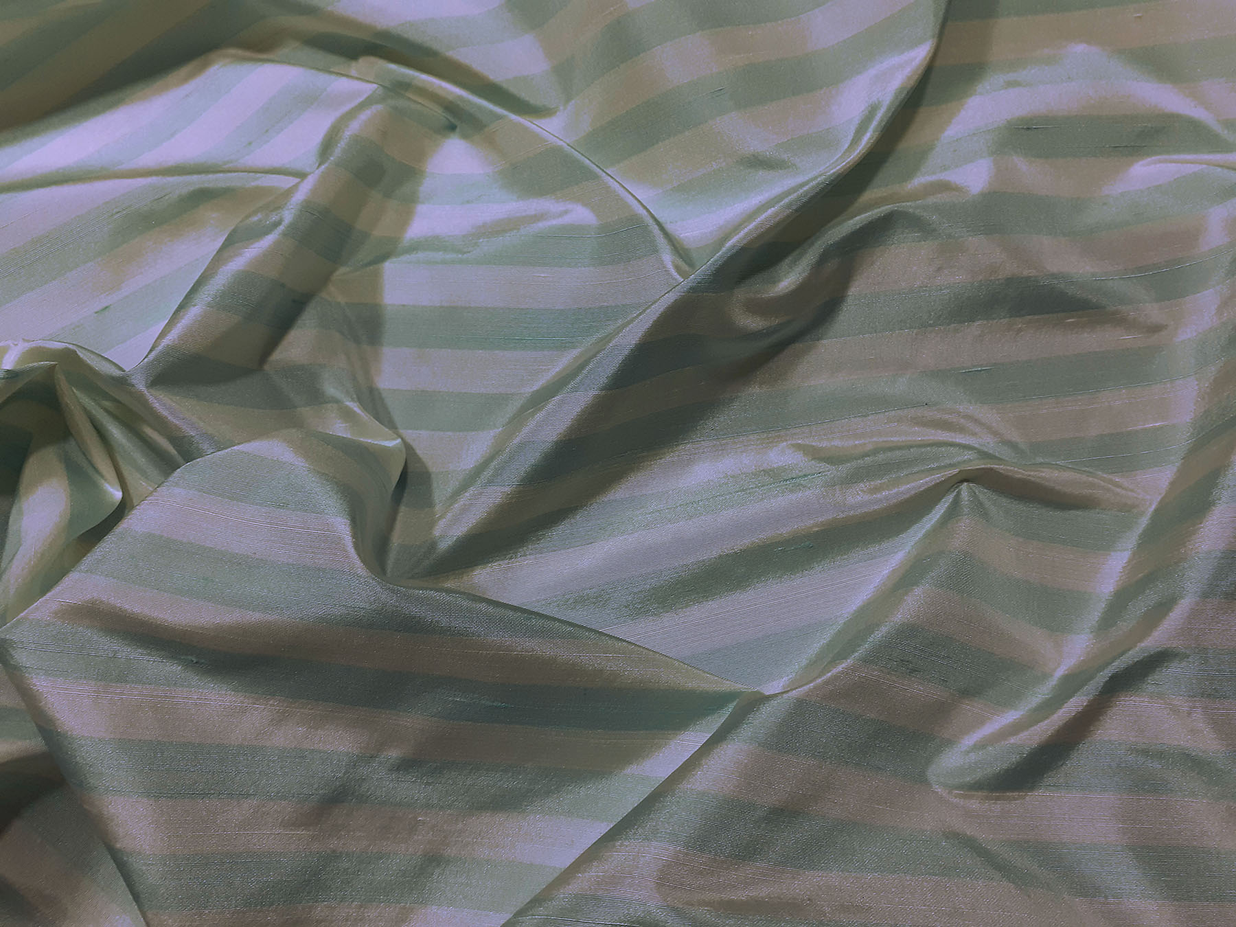 Seta Shantung a righe verde