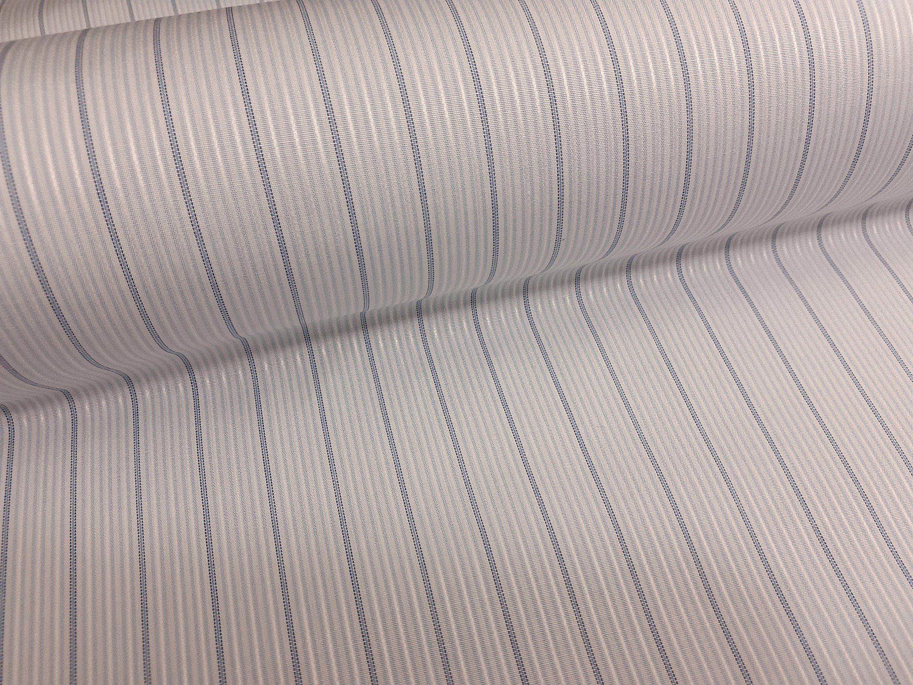 Tessuto per camicie popeline a righe blue su fondo bianco e grigio