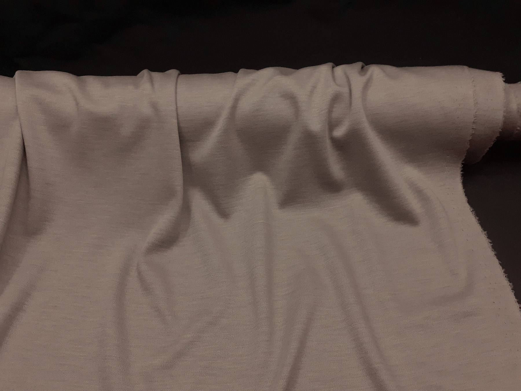Questo jersey in lana di peso medio sostenuto è una stoffa a maglia rasata. Ha un’ottima capacità di drappeggio, forma facilmente pieghe morbide e voluminose, non si stropiccia ed è confortevole, caldo e morbido. Ideale per la creazione di abiti morbidi, gonne e blouse.