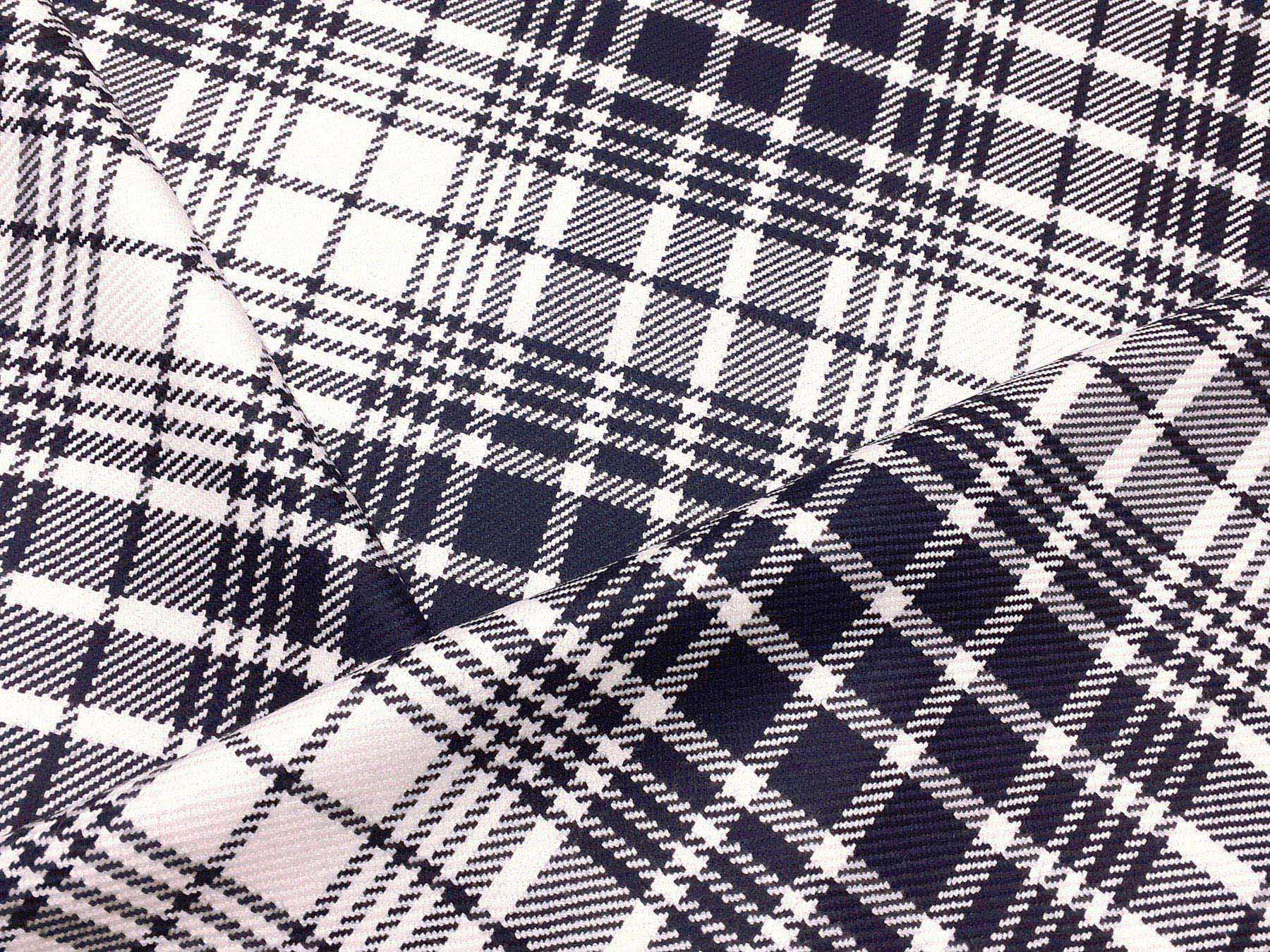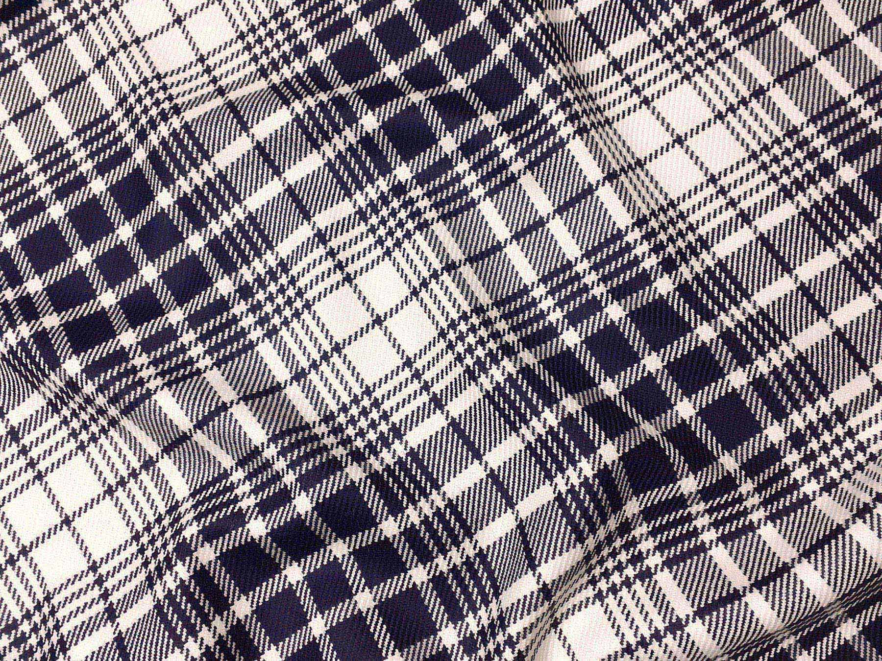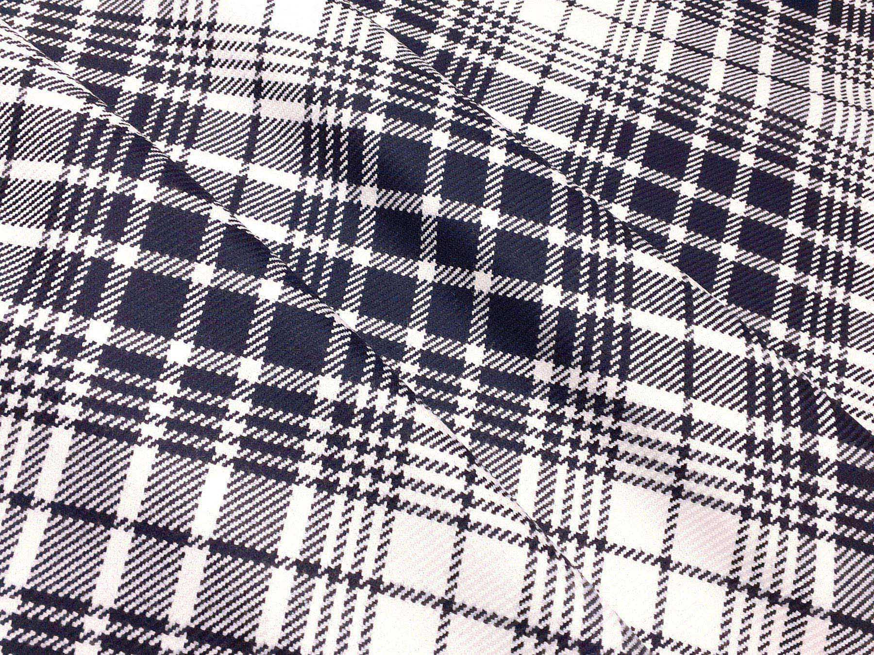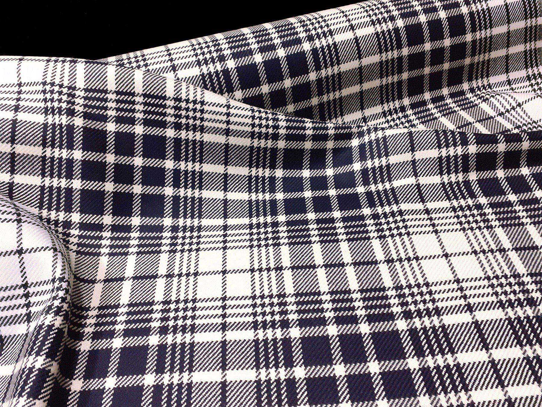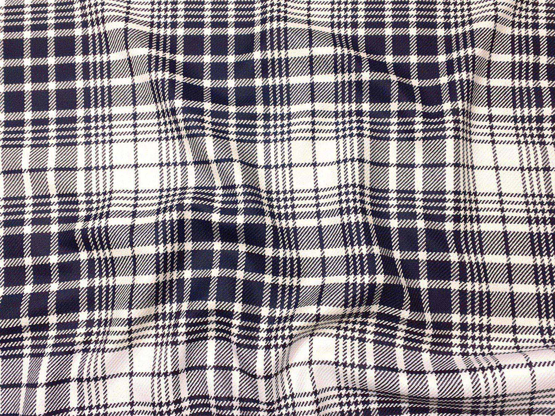 Tessuto in lana merino disegno scozzese blu e bianco