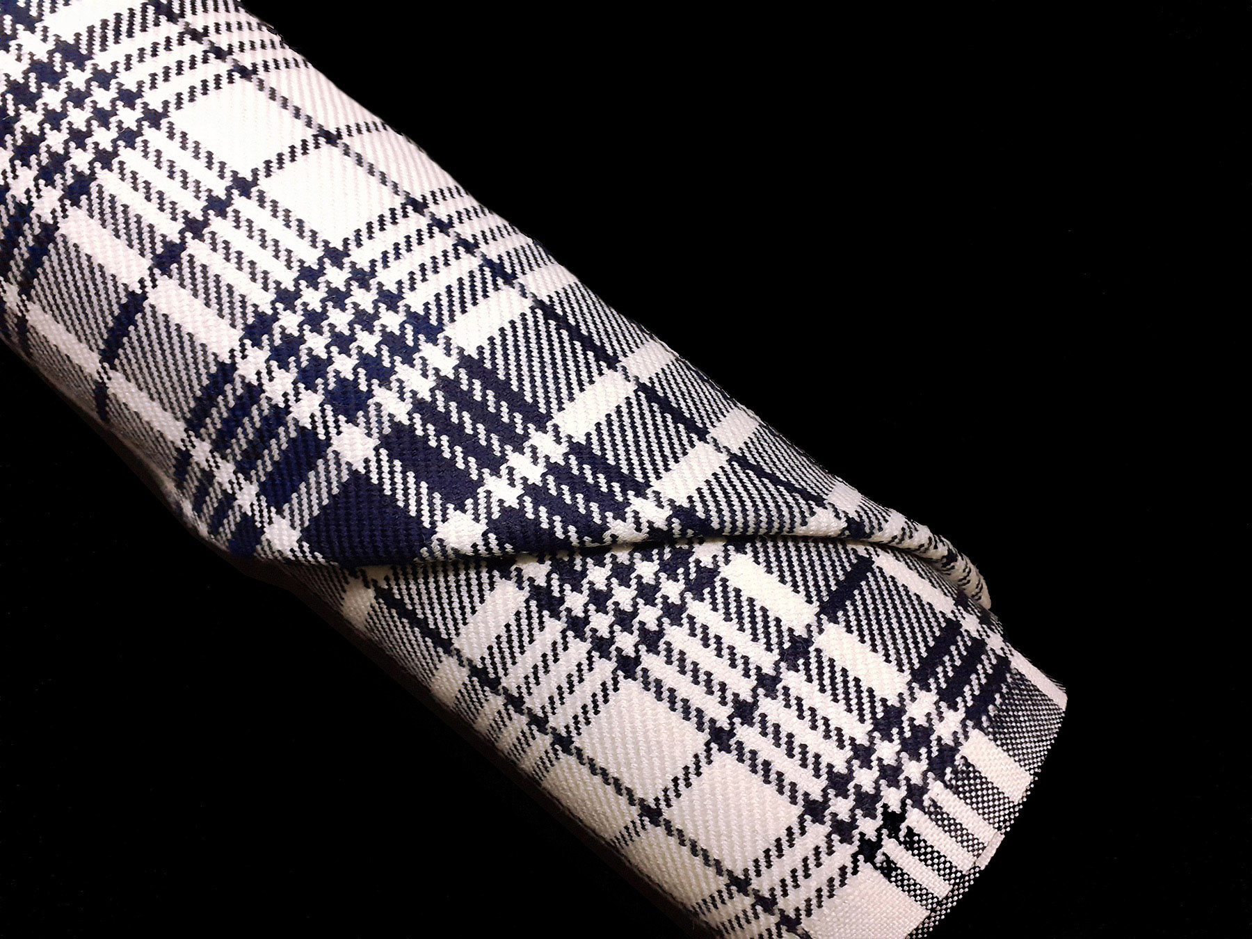 Tessuto Principe di Galles ad armatura Twill – la più utilizzata per le caratteristiche di robustezza e versatilità – prodotto a Biella in pura lana pettinata. Ha peso medio, mano calda, non si stropiccia e non si usura nel tempo. Consigliato per la realizzazione di capi spalla femminili, abiti e gonne.