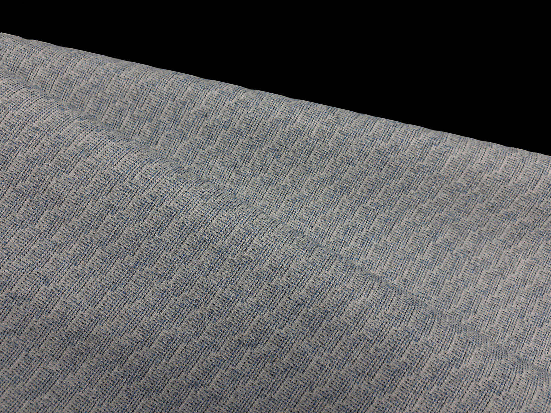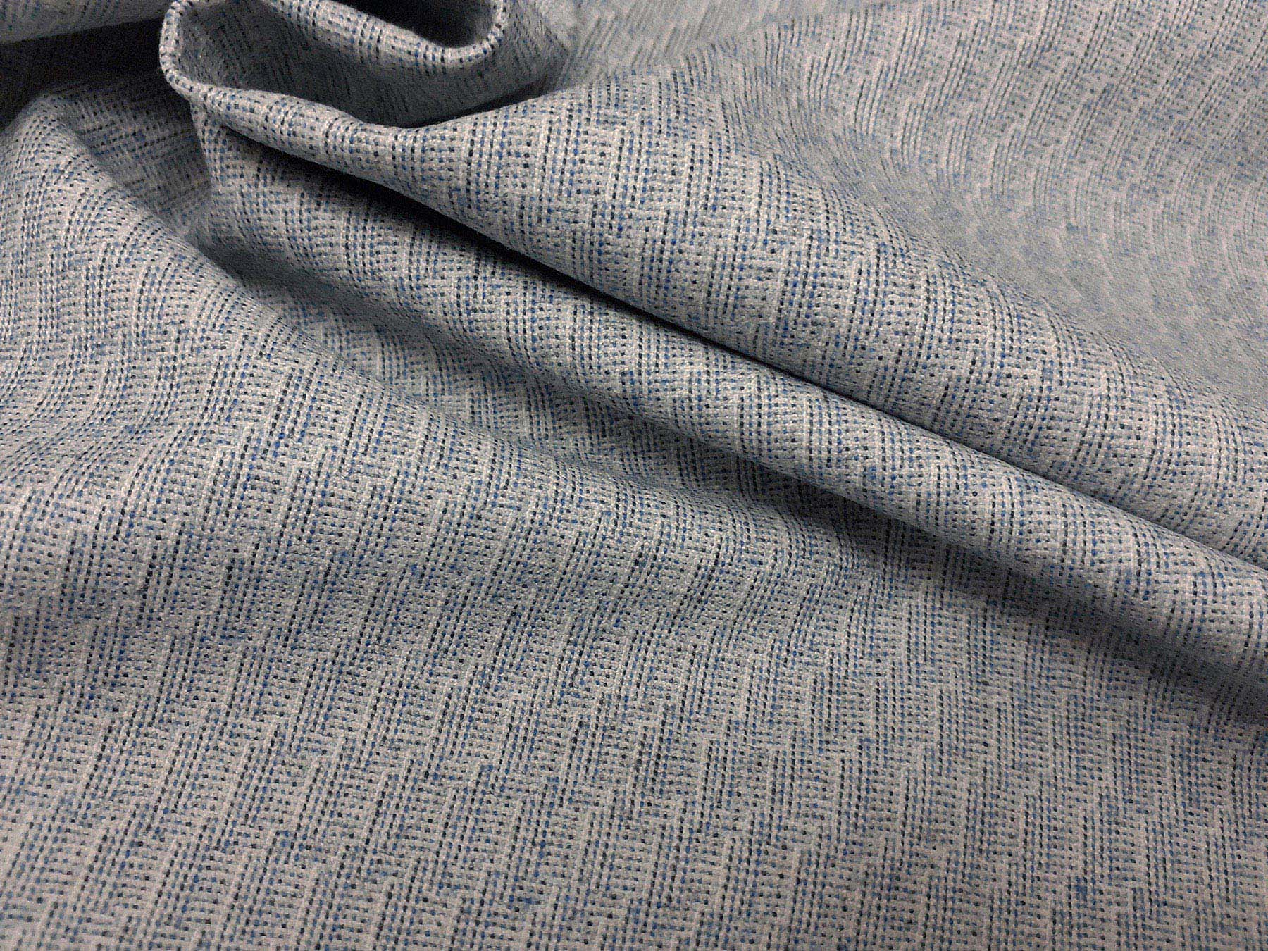 Tessuto in lana merino jacquard color grigio chiaro e celeste. Cerutti 1881