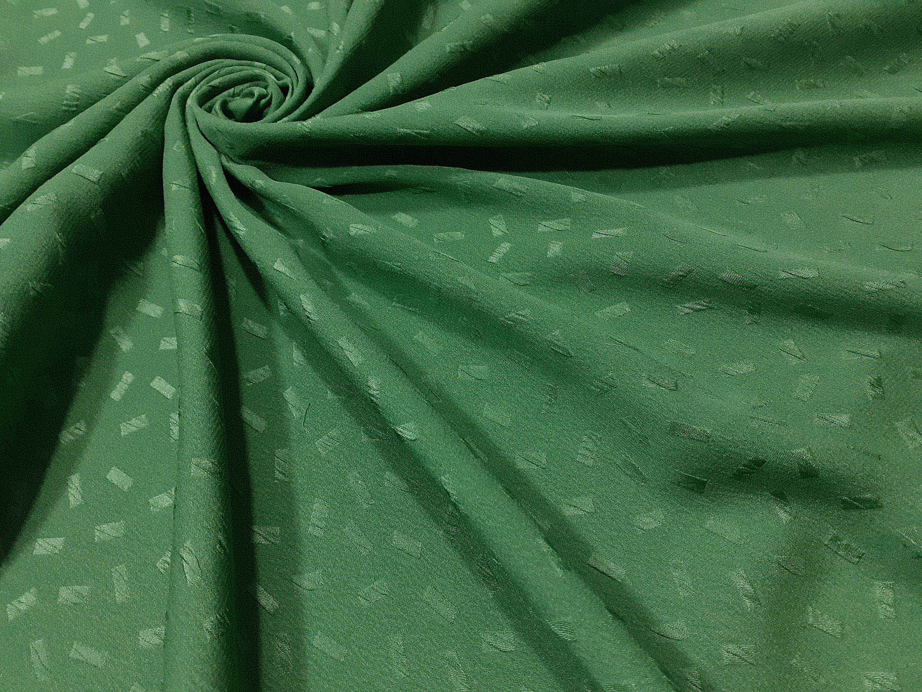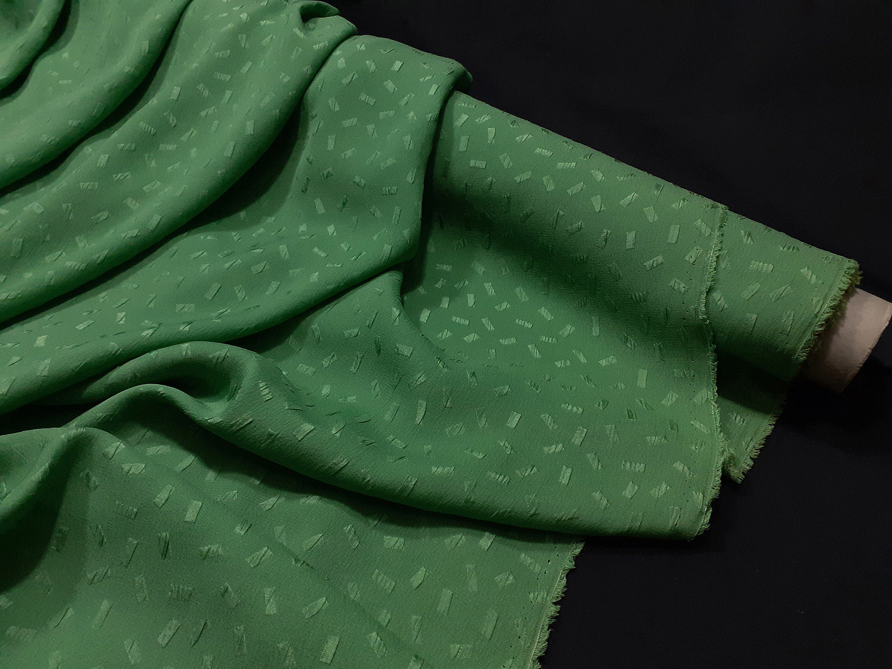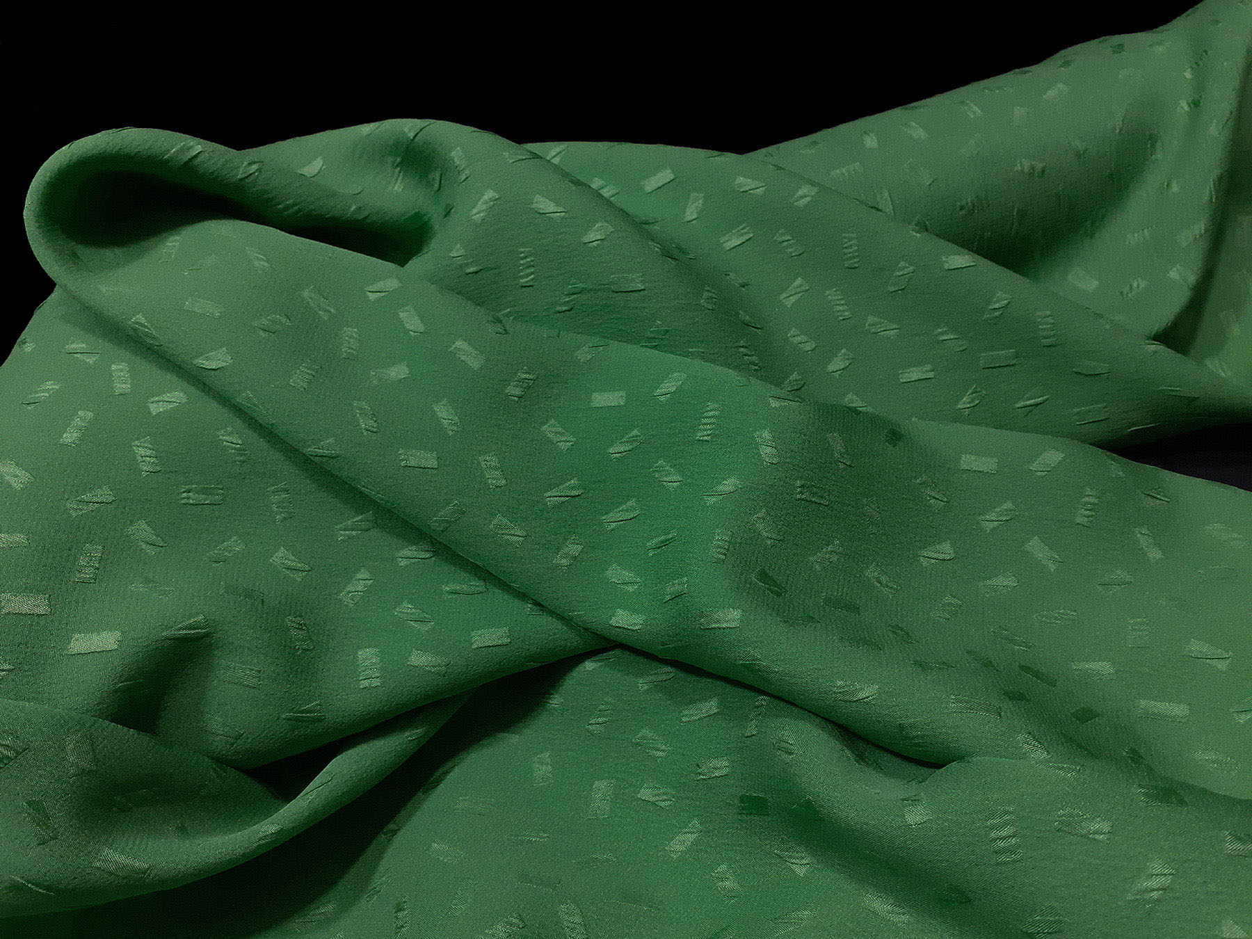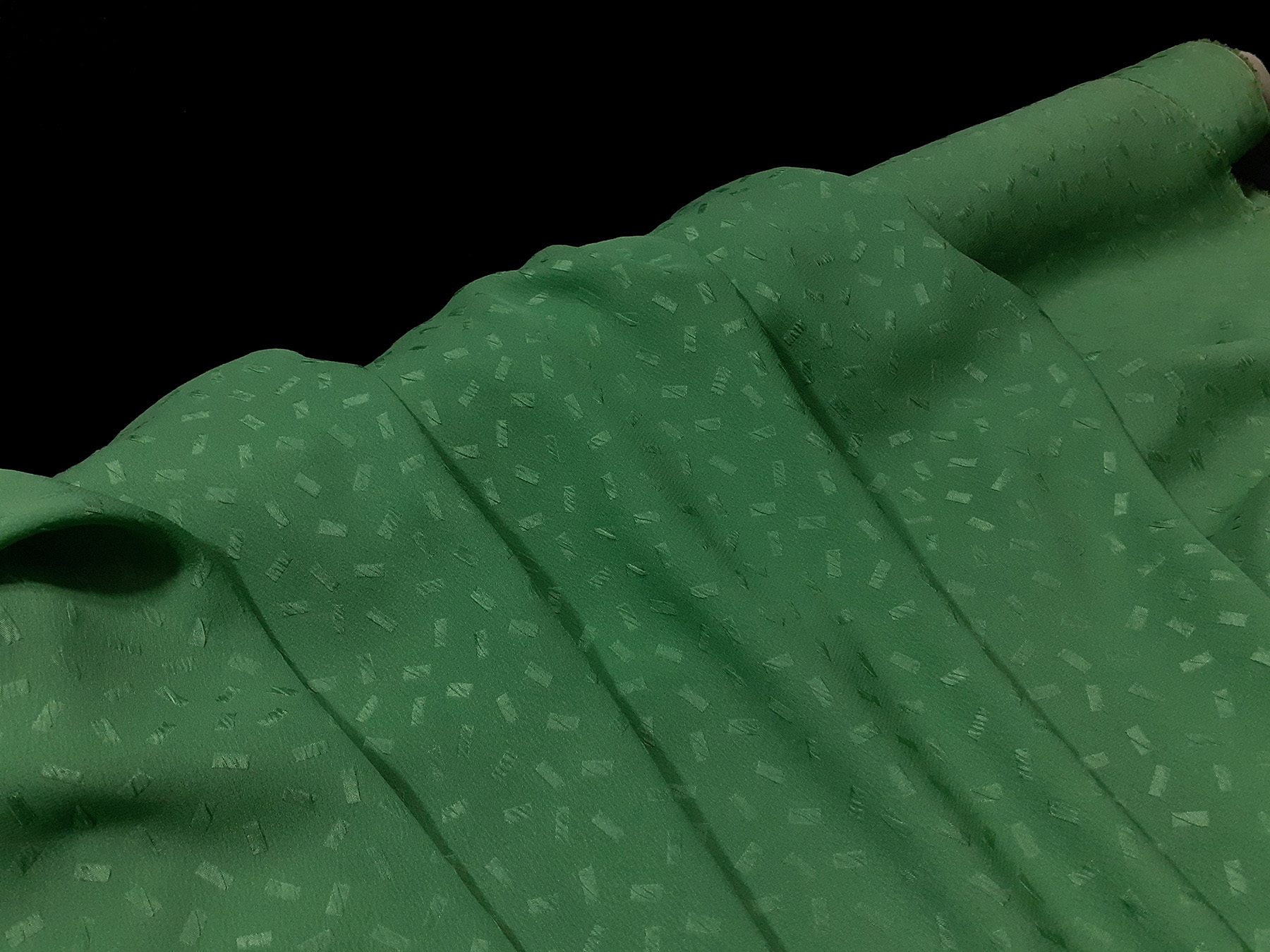 In questo tessuto di seta pura, prodotto a Como, la lavorazione jacquard con il contrasto fra lucido e opaco, crea un piacevole effetto di tridimensionalità. Perfetto per la realizzazione di abiti ampi e sinuosi, grazie alla sua morbidezza e caduta, può essere utilizzato anche per capi più lineari che mettono in evidenza la ricchezza e la particolarità di questo tipo di tessuto.