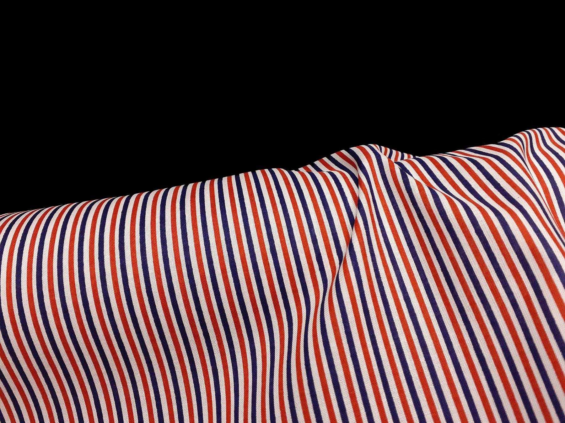 Questo tessuto,in puro cotone, tinto in filo (con colori quindi molto resistenti), è un tessuto liscio, compatto e allo stesso tempo morbido. Ha la struttura del popeline ma più leggero, perfetto per confezionare camicie da uomo estive e camicie da donna.