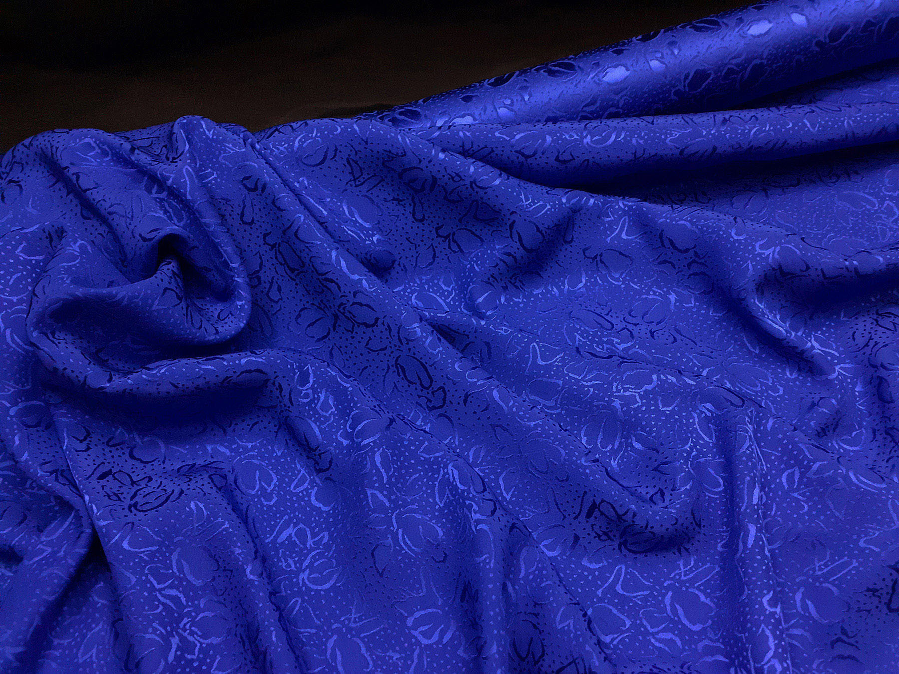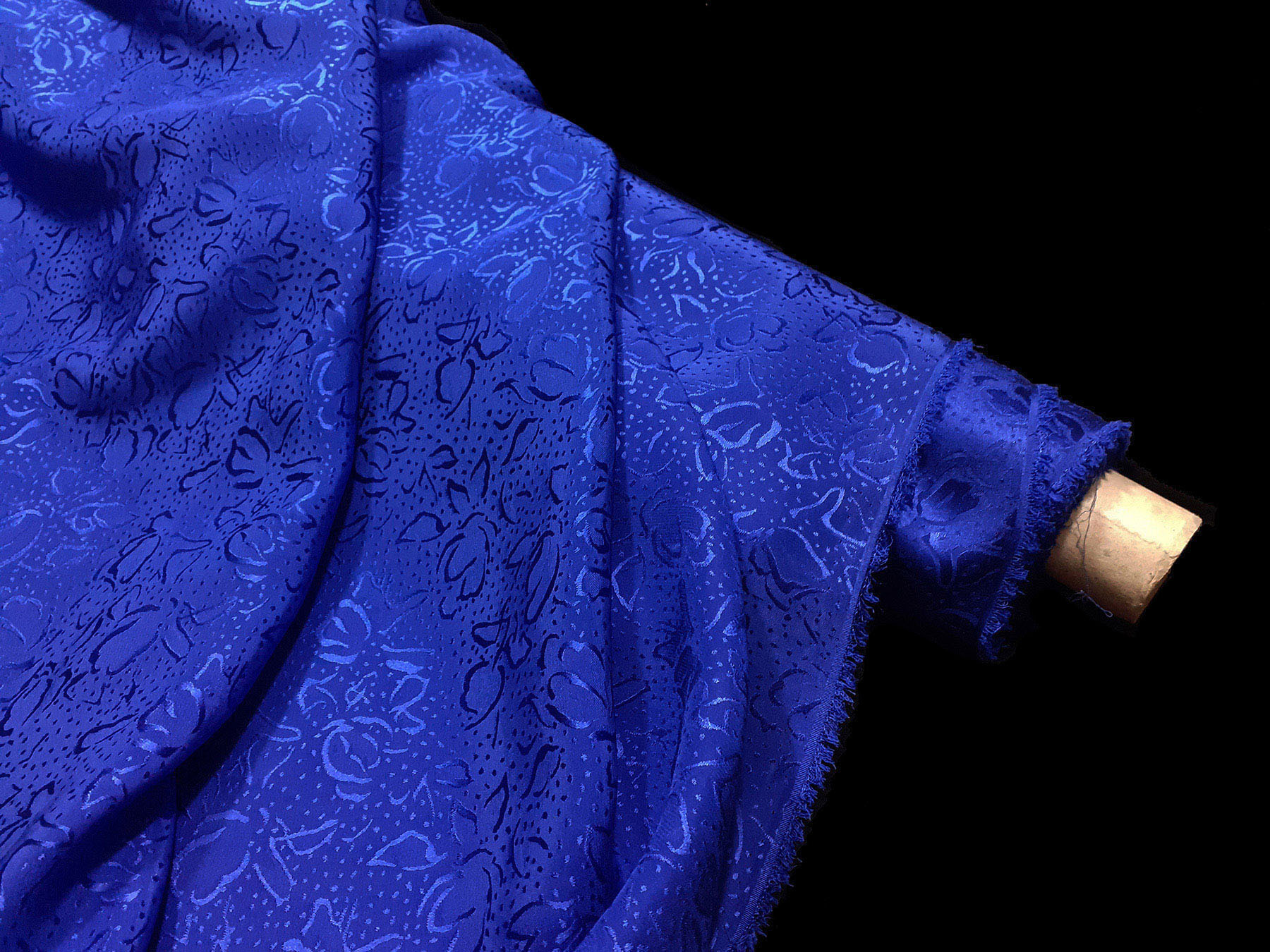 In questo tessuto di seta pura, prodotto a Como, la lavorazione jacquard con il contrasto fra lucido e opaco, crea un piacevole effetto di tridimensionalità. Perfetto per la realizzazione di abiti ampi e sinuosi, grazie alla sua morbidezza e caduta, può essere utilizzato anche per capi più lineari che mettono in evidenza la ricchezza e la particolarità di questo tipo di tessuto.