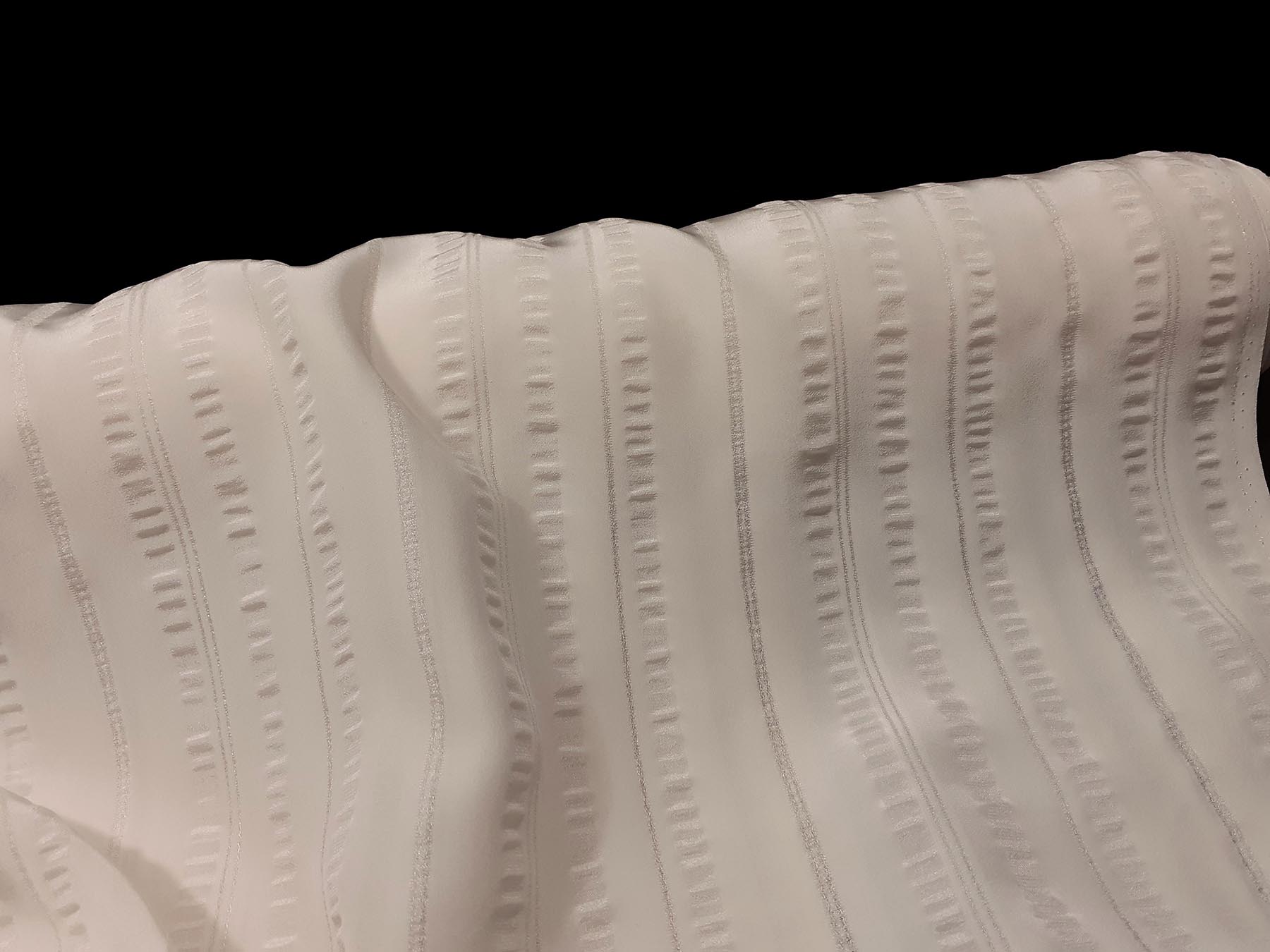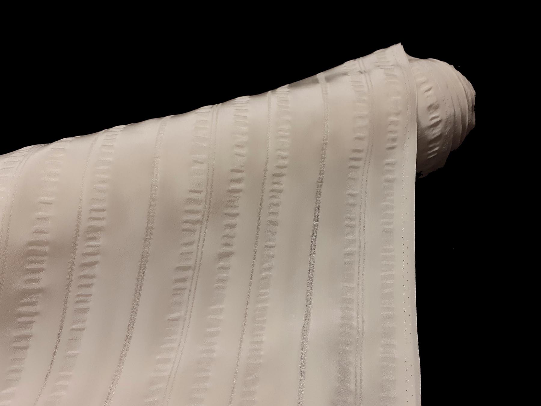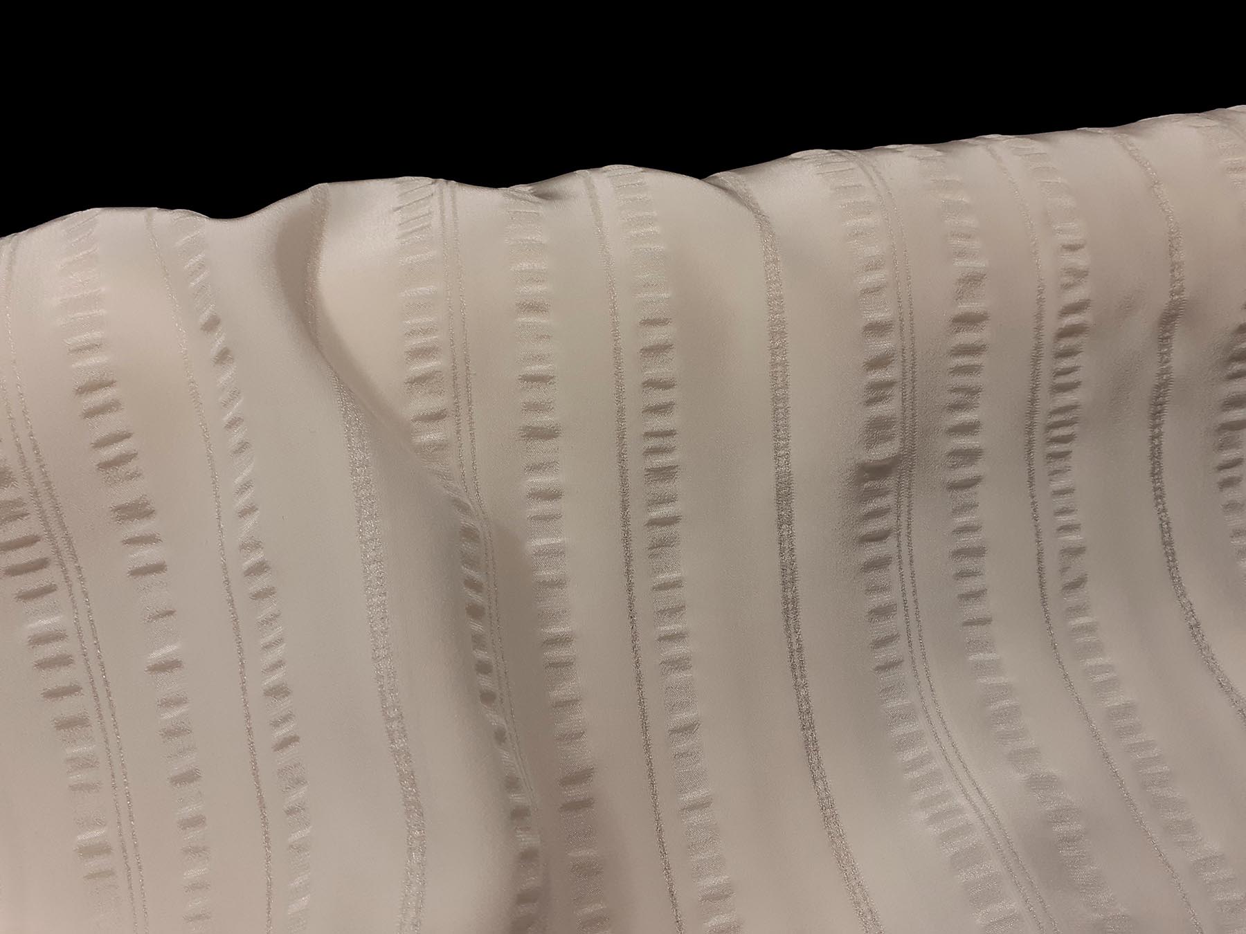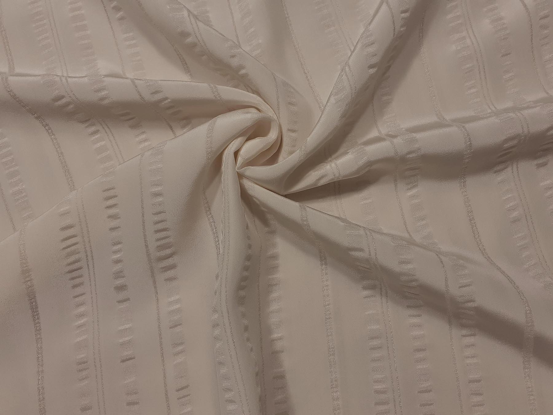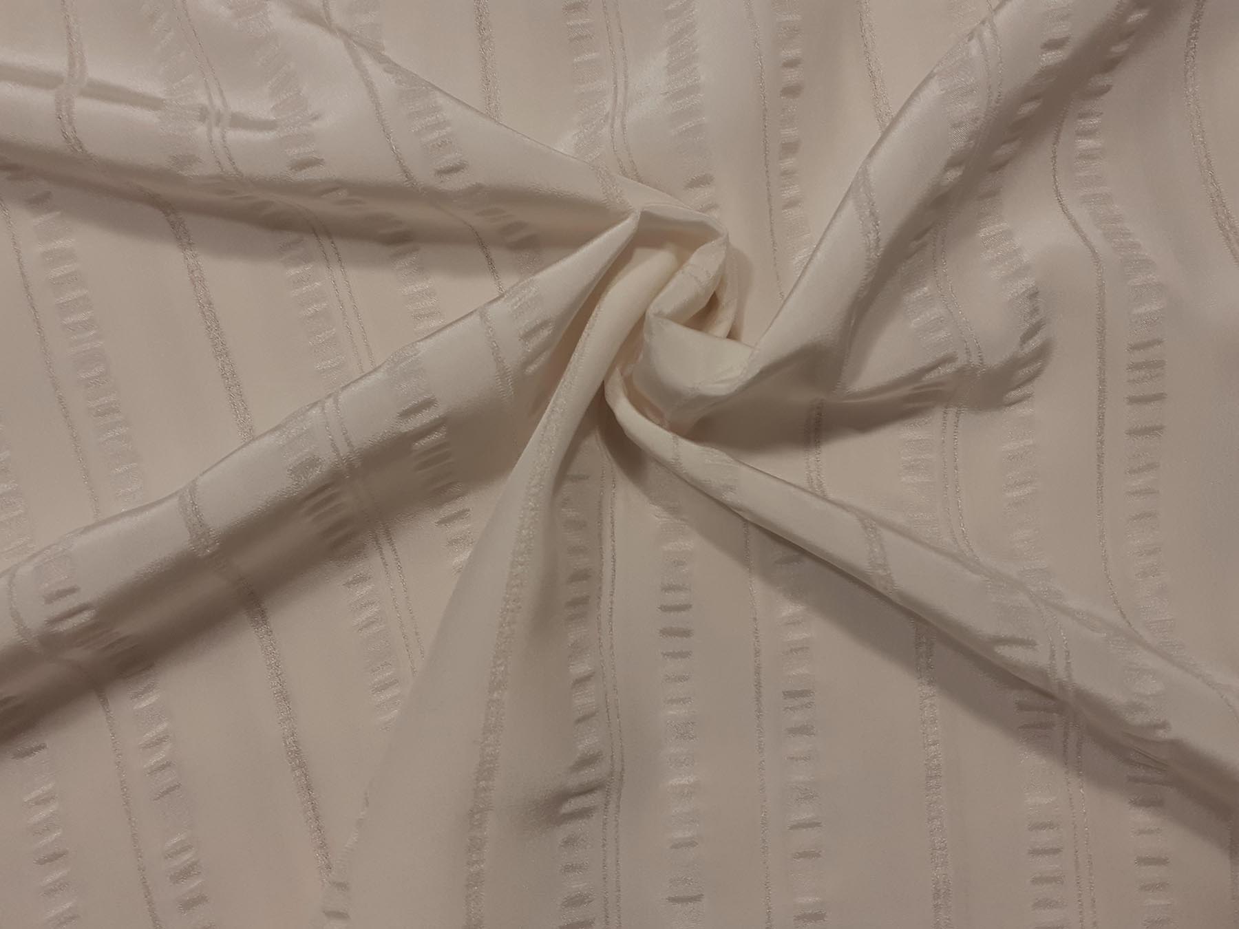 Crepe de Chine avorio in pura seta con effetto riga in georgette