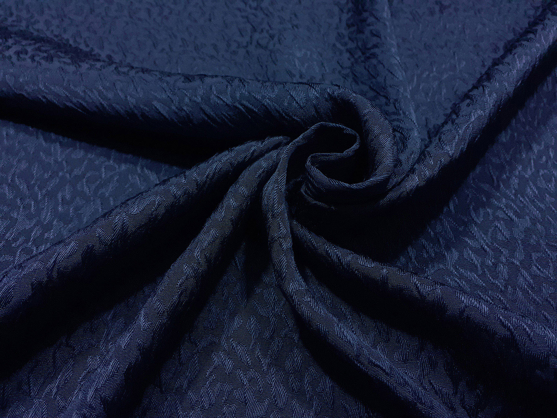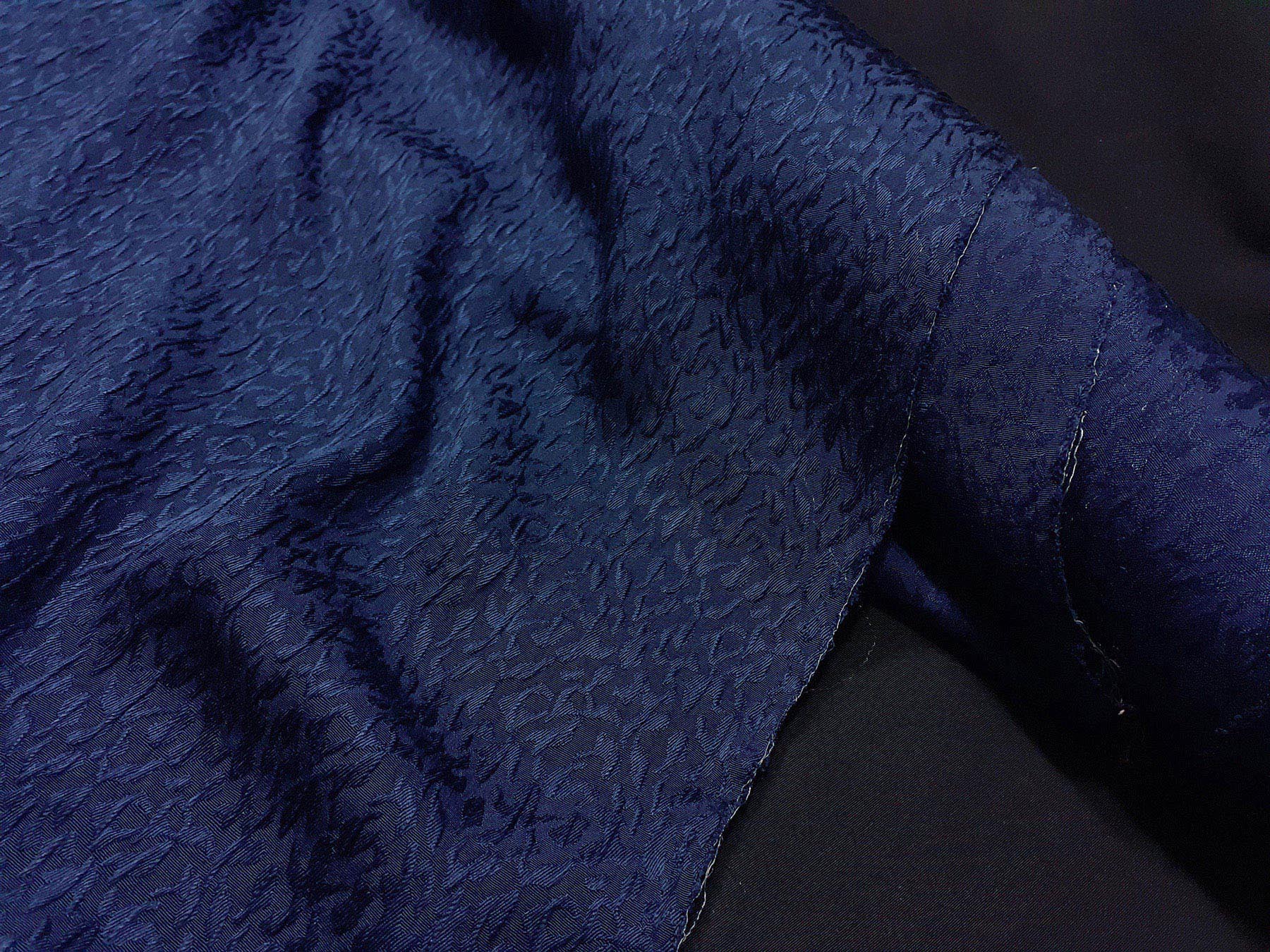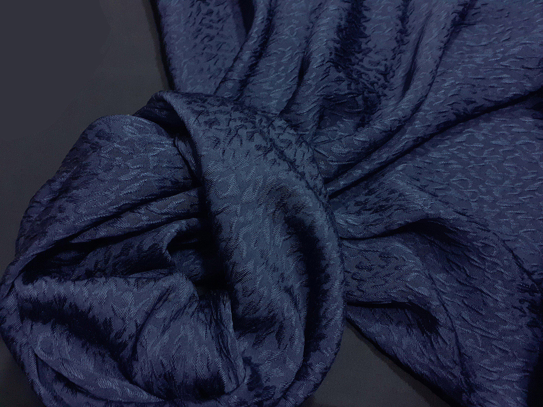 Crepe Marocaine in seta tinta blu effetto jacquard in rilievo