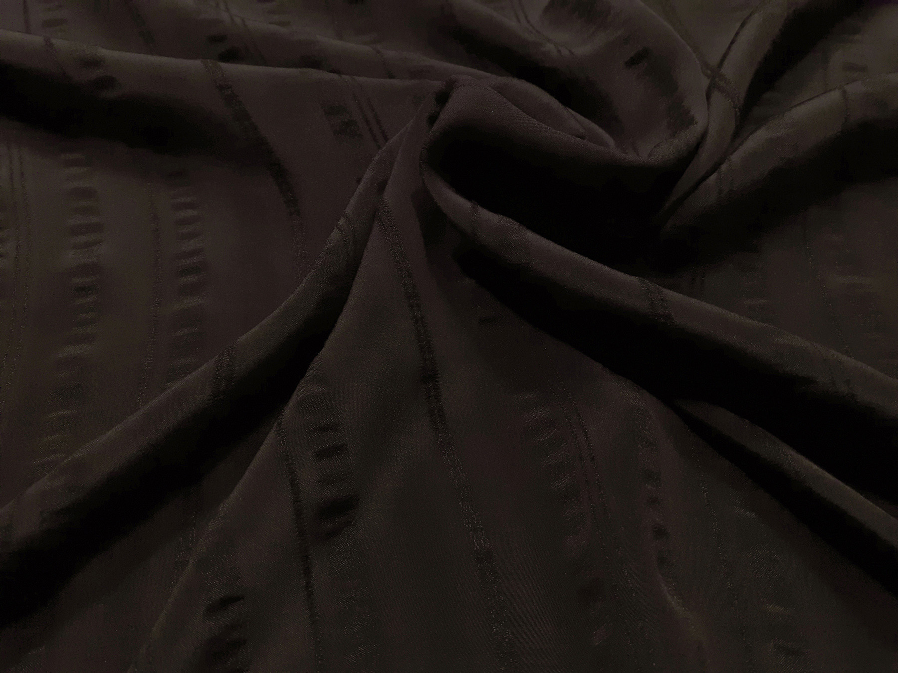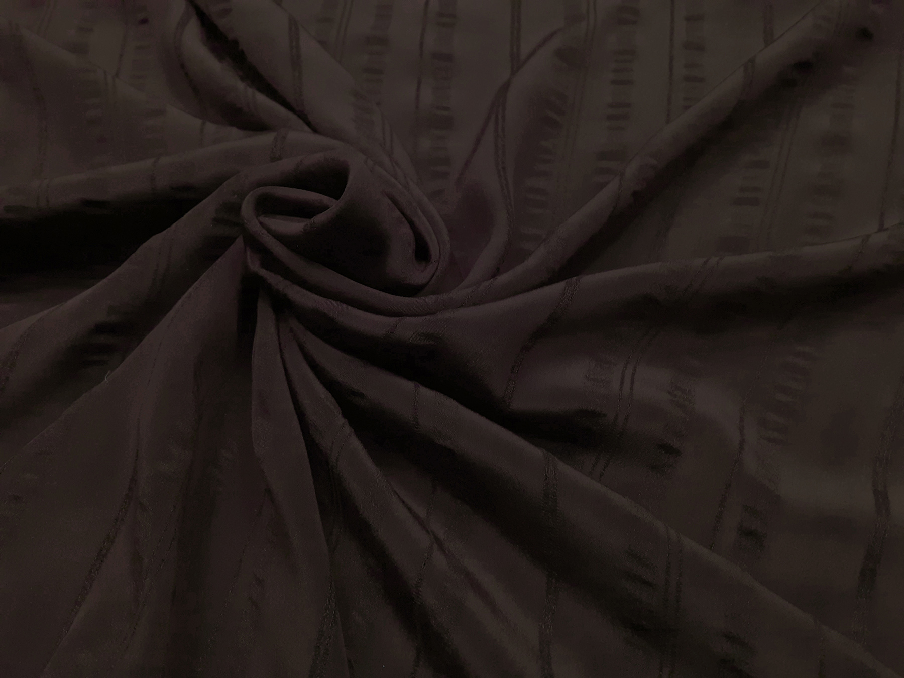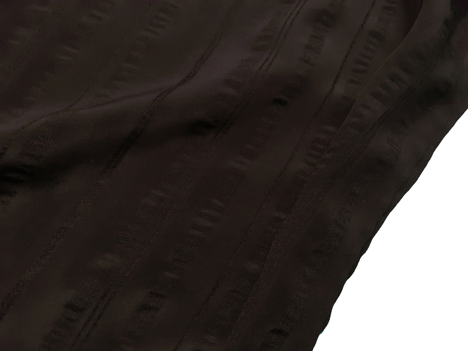 Crepe de Chine marrone in pura seta con effetto riga in georgette