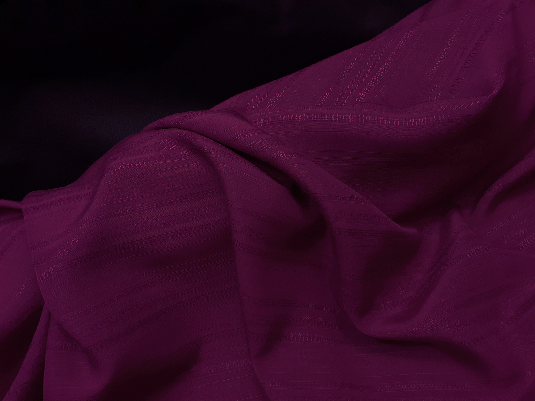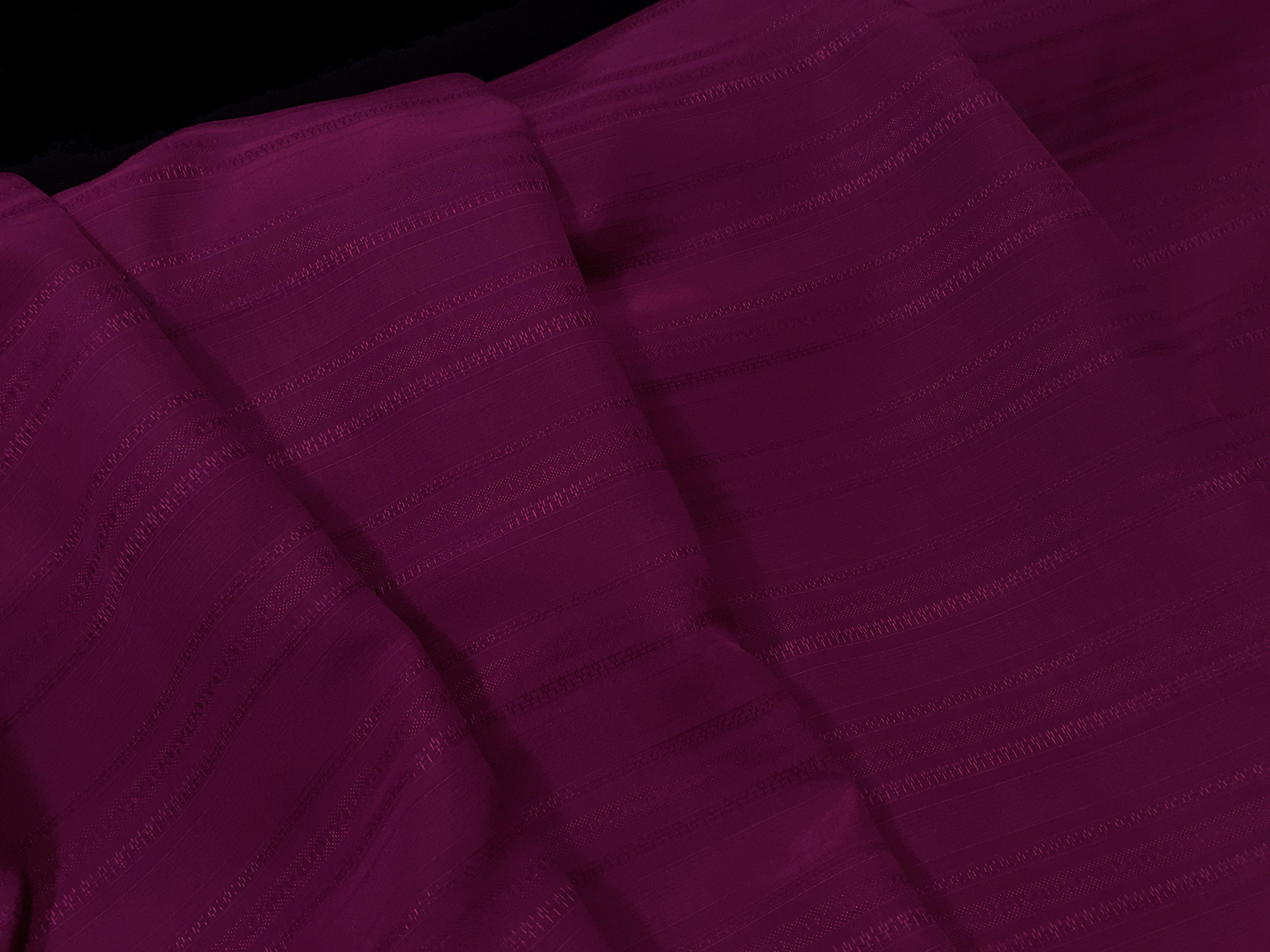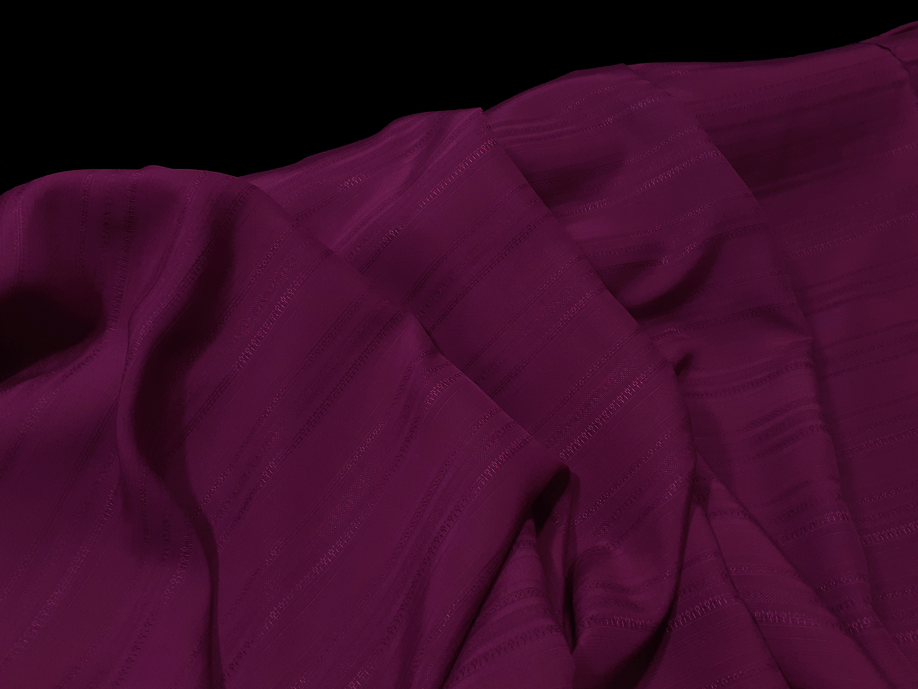 In questo tessuto di seta pura, prodotto a Como, la lavorazione jacquard con il contrasto fra lucido e opaco, crea un piacevole effetto di tridimensionalità. Perfetto per la realizzazione di abiti ampi e sinuosi, grazie alla sua morbidezza e caduta, può essere utilizzato anche per capi più lineari che mettono in evidenza la ricchezza e la particolarità di questo tipo di tessuto.