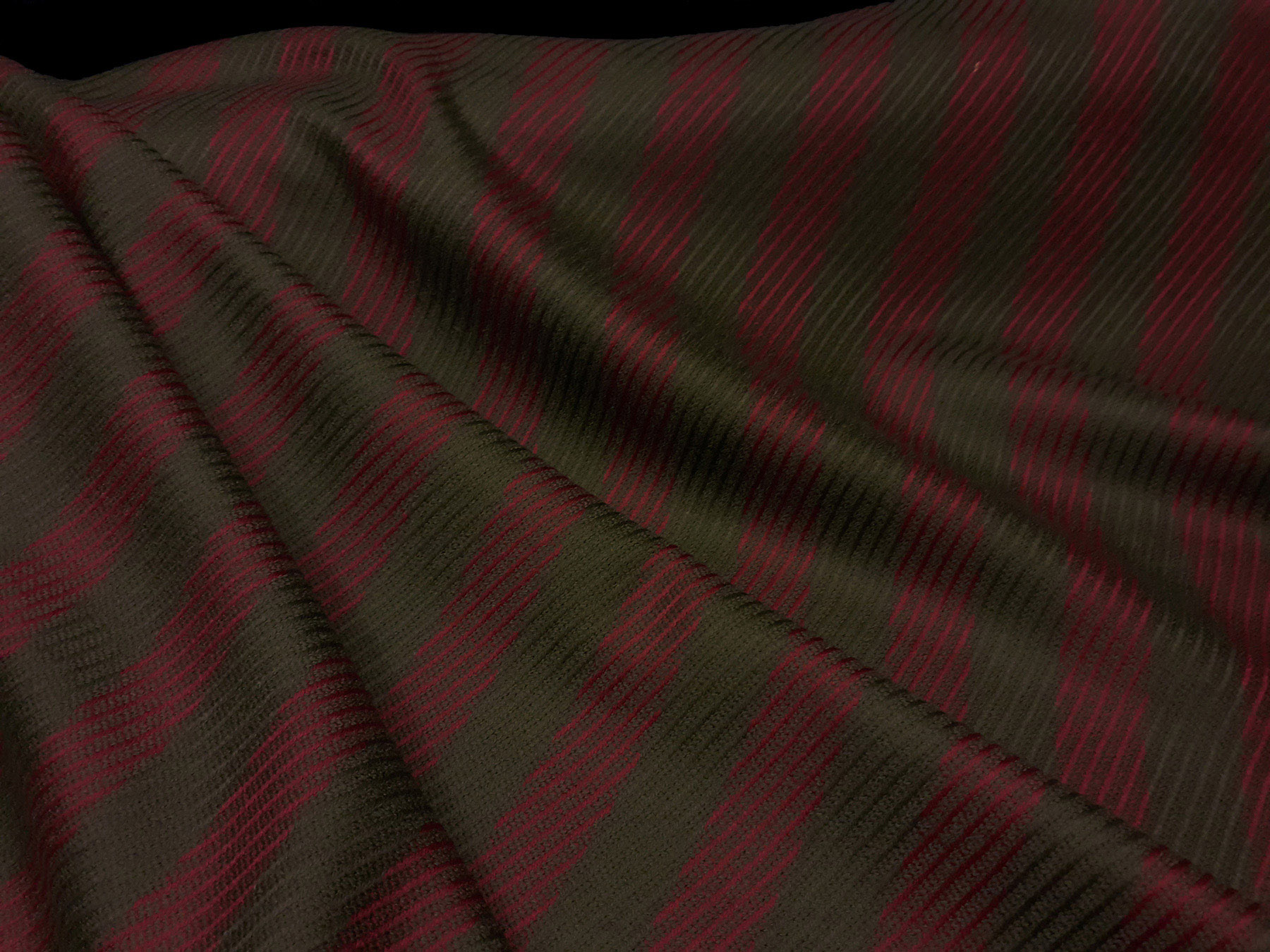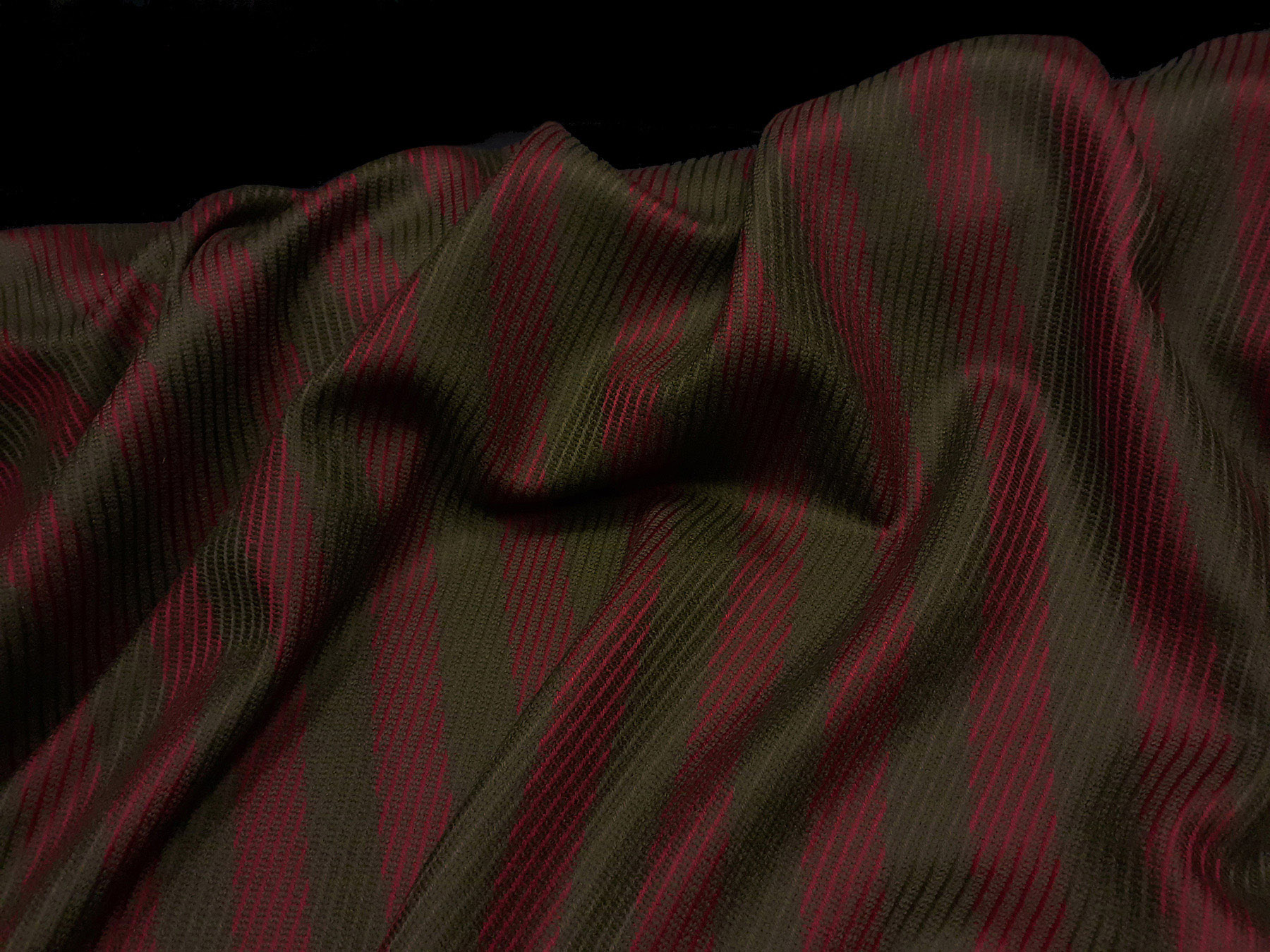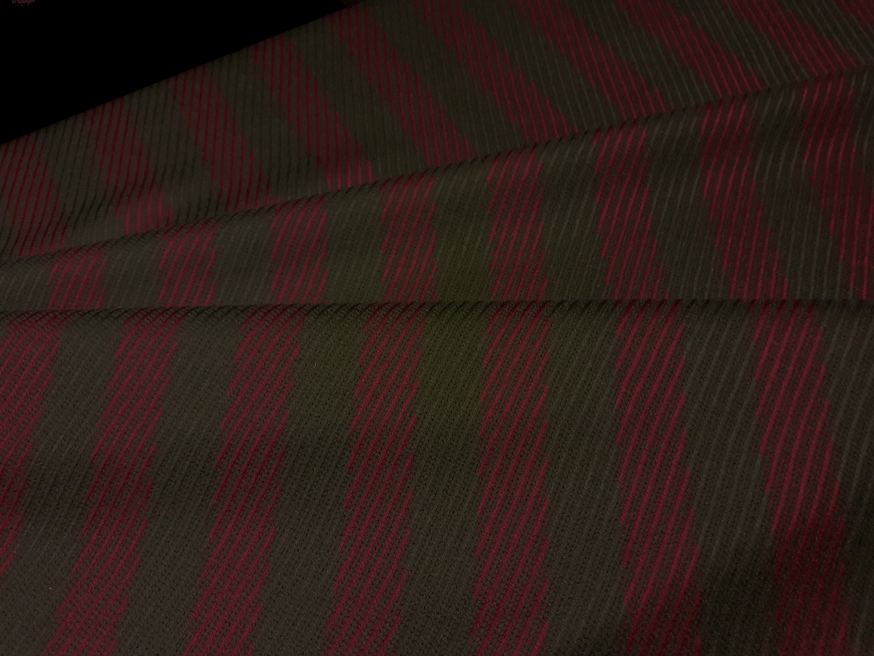 Cover morbido in lana e cashmere riga verde oliva e bordeaux