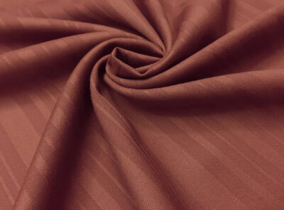Tessuto in lana pettinata tinta rame con righe in rasoIn questo tessuto di pura lana pettinata prodotto a Biella la lavorazione jacquard, con il contrasto fra lucido e opaco, crea un piacevole effetto di tridimensionalità. Di peso leggero ha mano calda, compatta e morbida ed è adatto per realizzare abiti e gonne.