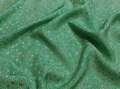 Seta jacquard fantasia astratta verde su fondo bianco. Valentino Miss VIn questo tessuto di seta pura, prodotto a Como, la lavorazione jacquard con il contrasto fra lucido e opaco, crea un piacevole effetto di tridimensionalità. Perfetto per la realizzazione di abiti ampi e sinuosi, grazie alla sua morbidezza e caduta, può essere utilizzato anche per capi più lineari che mettono in evidenza la ricchezza e la particolarità di questo tipo di tessuto.