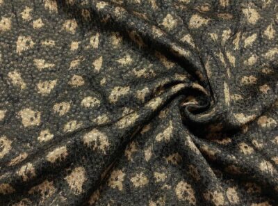 Seta jacquard fantasia astratta su fondo beige e marroneIn questo tessuto di seta pura, prodotto a Como, la lavorazione jacquard con il contrasto fra lucido e opaco, crea un piacevole effetto di tridimensionalità. Perfetto per la realizzazione di abiti ampi e sinuosi, grazie alla sua morbidezza e caduta, può essere utilizzato anche per capi più lineari che mettono in evidenza la ricchezza e la particolarità di questo tipo di tessuto.