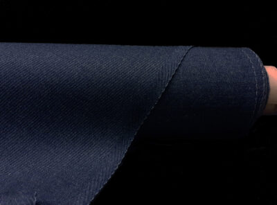 Tesssuto double blu marino in pura lana pettinataTessuto double ad armatura Twill – la più utilizzata nei tessuti di drapperia per le caratteristiche di robustezza e versatilità – prodotto a Biella in pura lana merino pettinata. Perfetto per un clima piuttosto freddo ha peso importante, non si stropiccia e non si usura nel tempo. Consigliato per la realizzazione di capi spalla femminili.