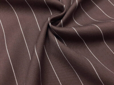 Twill double in lana pettinata marron glassè gessatoTessuto double ad armatura Twill – la più utilizzata per le caratteristiche di robustezza e versatilità – prodotto a Biella in pura lana merino pettinata. Ha peso importante, mano calda, non si stropiccia e non si usura nel tempo. Consigliato per la realizzazione di capi spalla femminili come blazer, giacconi e gonne.