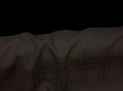 Grain de poudre jacquard marrone in pura lanaIl Grain de Poudre è un tessuto pettinato di lana molto utilizzato nell’alta moda. Compatto e sottile – di peso medio- con un disegno jacquard Principe di Galles, viene usato per confezionare pantaloni e giacche. É caratterizzato da una superficie impercettibilmente granulosa sul diritto e liscia sul rovescio.