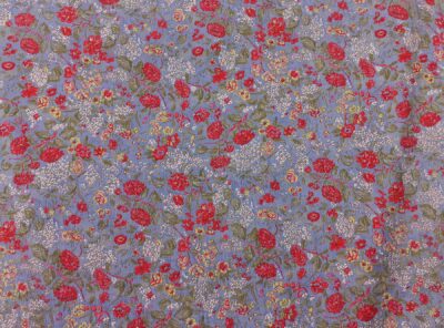 Seta Shantung fantasia floreale su fondo celesteQuesto tessuto di seta, prodotto a Como, è stato realizzato utilizzando filati shantung molto ritorti e quindi poco irregolari. Si presenta compatto, poco rilevato, ma conserva le caratteristiche dello shantung ovvero la mano sostenuta e “croccante”. Ha un aspetto semi opaco conferito dall’ordito opaco e dalla trama lucida inoltre è un tessuto che non si stropiccia ed è resistente all’usura.