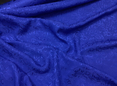 Seta jacquard tinta blu chinaIn questo tessuto di seta pura, prodotto a Como, la lavorazione jacquard con il contrasto fra lucido e opaco, crea un piacevole effetto di tridimensionalità. Perfetto per la realizzazione di abiti ampi e sinuosi, grazie alla sua morbidezza e caduta, può essere utilizzato anche per capi più lineari che mettono in evidenza la ricchezza e la particolarità di questo tipo di tessuto.