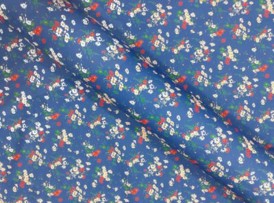 Popeline in cotone satinato fantasia floreale fondo celesteQuesto tessuto in puro cotone egiziano doppio ritorto, è un tessuto liscio, compatto e allo stesso tempo morbido e setoso al tatto. Si contraddistingue per una notevole lucentezza, una resistenza all’usura, al tempo e ai lavaggi. È perfetto per confezionare abiti e blouse ma può essere usato anche per capispalla.