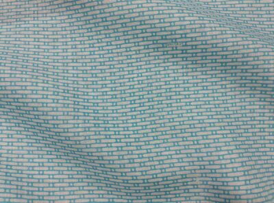Tessuto per camicie in puro lino con motivi geometrici turchesi.Celine.Tessuto di medio peso in puro lino doppio ritorto. Realizzato con la classica armatura a tela dove ogni filo di ordito si intreccia con ogni filo di trama ha mano fresca, lucentezza serica, rigidità e resistenza molto elevata. Perfetto per realizzare abiti, gonne e blouse. Alta Moda Celine