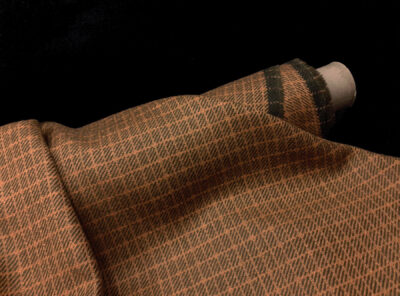 Tessuto in lana merino riga su diagonale tinta tabacco e cammelloTessuto ad armatura Twill – la più utilizzata per le caratteristiche di robustezza e versatilità – prodotto a Biella in pura lana merino. Ha peso medio, mano calda, non si stropiccia e non si usura nel tempo. Consigliato per la realizzazione di capi spalla femminili e gonne.