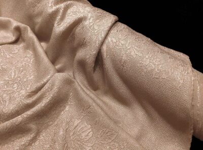 Seta jacquard tinta beigeIn questo tessuto di seta pura, prodotto a Como, la lavorazione jacquard con il contrasto fra lucido e opaco, crea un piacevole effetto di tridimensionalità. Perfetto per la realizzazione di abiti ampi e sinuosi, grazie alla sua morbidezza e caduta, può essere utilizzato anche per capi più lineari che mettono in evidenza la ricchezza e la particolarità di questo tipo di tessuto.