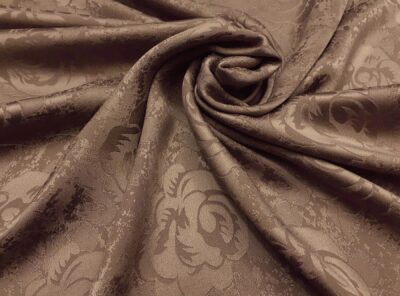 Seta jacquard tinta beige scuroIn questo tessuto di seta pura, prodotto a Como, la lavorazione jacquard con il contrasto fra lucido e opaco, crea un piacevole effetto di tridimensionalità. Perfetto per la realizzazione di abiti ampi e sinuosi, grazie alla sua morbidezza e caduta, può essere utilizzato anche per capi più lineari che mettono in evidenza la ricchezza e la particolarità di questo tipo di tessuto.