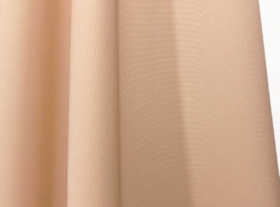 Seta Shantung pois irregolari su fondo beige chiaroQuesto tessuto di seta, prodotto a Como, è stato realizzato utilizzando filati shantung molto ritorti e quindi poco irregolari. Si presenta compatto, poco rilevato, ma conserva le caratteristiche dello shantung ovvero la mano sostenuta e “croccante”. Ha un aspetto semi opaco conferito dall’ordito opaco e dalla trama lucida inoltre è un tessuto che non si stropiccia ed è resistente all’usura.