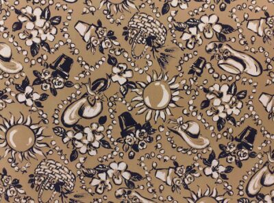 Seta Shantung fantasia a “greche” su fondo beige chiaroQuesto tessuto di seta, prodotto a Como, è stato realizzato utilizzando filati shantung molto ritorti e quindi poco irregolari. Si presenta compatto, poco rilevato, ma conserva le caratteristiche dello shantung ovvero la mano sostenuta e “croccante”. Ha un aspetto semi opaco conferito dall’ordito opaco e dalla trama lucida inoltre è un tessuto che non si stropiccia ed è resistente all’usura.