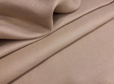 Tessuto in puro lino tinta cordaTessuto di peso mediopesante in puro lino doppio ritorto. Realizzato con la classica armatura a tela dove ogni filo di ordito si intreccia con ogni filo di trama ha mano fresca, lucentezza serica, rigidità e resistenza molto elevata. Perfetto per realizzare capi spalla, gonne, pantaloni e abiti diritti.