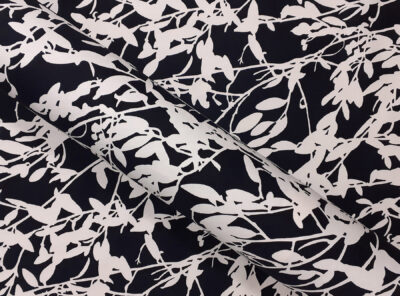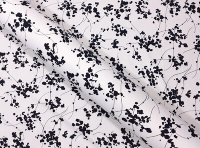 Popeline in cotone satinato fantasia floreale in bianco e neroQuesto tessuto in puro cotone egiziano doppio ritorto, è un tessuto liscio, compatto e allo stesso tempo morbido e setoso al tatto. Si contraddistingue per una notevole lucentezza, una resistenza all’usura, al tempo e ai lavaggi. È perfetto per confezionare abiti e blouse ma può essere usato anche per capispalla.