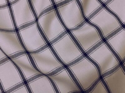 Lana merino pettinata finestrato nero su fondo avorioTessuto ad armatura Twill – la più utilizzata nei tessuti di drapperia per le caratteristiche di robustezza e versatilità – prodotto a Biella in pura lana merino pettinata. Di peso medio-leggero ha mano morbida, non si stropiccia e non si usura nel tempo. Consigliato per la realizzazione di capi spalla femminili, pantaloni e gonne.