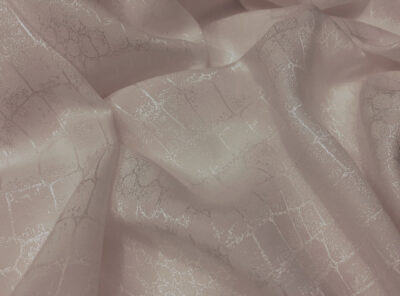 Crepe de Chine avorio in pura seta con effetto riga in georgetteLa Crepe de Chine in pura seta, prodotta a Como, è un tessuto semi-opaco che si ottiene da una trama opaca che contrasta la lucentezza dell’ordito. Caratterizzata da mano leggera e morbida viene utilizzata per realizzare camicie, top, abiti e gonne morbide, pantaloni eleganti, lingerie etc.