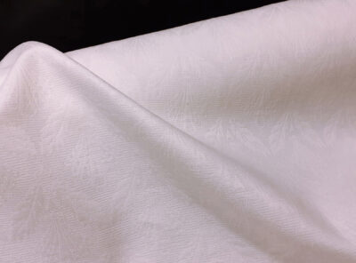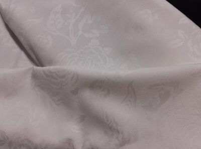 Cotone bianco disegno jacquard florealeLa lavorazione jacquard di questo cotone, con il contrasto fra lucido e opaco, crea un piacevole effetto di tridimensionalità. Di medio peso è perfetto per la realizzazione di abiti, blouse e gonne che mettono in evidenza la ricchezza e la particolarità di questo tipo di tessuto.