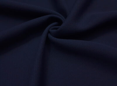 Filato crepe in pura lana merino pettinata blu navyQuesta stoffa che presenta una superficie rasata è stata realizzata a Biella con un filato crepe molto sottile e ritorto, tessuto in diagonale . Ha mano scattante e caduta morbida. Perfetto per tubini, gonne, pantaloni fluidi, giacche, spolverini. Non si stropiccia e non è soggetto a ”pilling” grazie alla forte torsione del filato.
