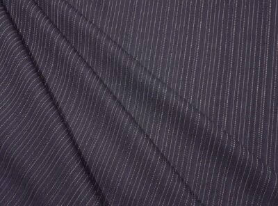 Tessuto in lana filato crepe blu gessatoRealizzato a Biella con filato crepe di pura lana, di peso leggero è un tessuto che ha una mano scattante e caduta morbida, perfetto per realizzare abitii e gonne. Caratterizzato da superficie liscia e moderatamente crespa, non si stropiccia e non è soggetto a ”pilling” grazie alla forte torsione del filato.