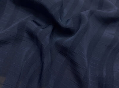 Crepe de Chine blu in pura seta con effetto riga in georgetteLa Crepe de Chine in pura seta, prodotta a Como, è un tessuto semi-opaco che si ottiene da una trama opaca che contrasta la lucentezza dell’ordito. Caratterizzata da mano leggera e morbida viene utilizzata per realizzare camicie, top, abiti e gonne morbide, pantaloni eleganti, lingerie etc.