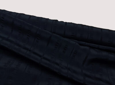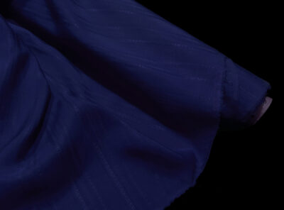 Tessuto in pura seta blu gessatoTessuto gessato ad armatura Twill – la più utilizzata nei tessuti di drapperia per le caratteristiche di robustezza e versatilità – prodotta a Biella in pura seta. Di peso medio non si stropiccia e non si usura nel tempo. Consigliato per la realizzazione di capi spalla femminili e gonne.