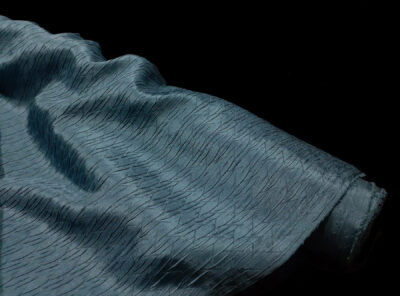Seta jacquard goffrata effetto corteccia turchese scuroIn questo tessuto di seta pura, prodotto a Como, la lavorazione jacquard con il contrasto fra lucido e opaco, crea un piacevole effetto di tridimensionalità. Perfetto per la realizzazione di abiti ampi e sinuosi, grazie alla sua morbidezza e caduta, può essere utilizzato anche per capi più lineari che mettono in evidenza la ricchezza e la particolarità di questo tipo di tessuto.