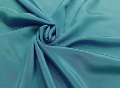 Crepe de Chine in seta tinta turcheseLa Crepe de Chine in pura seta, prodotta a Como, è un tessuto semi-opaco che si ottiene da una trama opaca che contrasta la lucentezza dell’ordito. Caratterizzata da mano leggera e morbida viene utilizzata per realizzare camicie, top, abiti e gonne morbide, pantaloni eleganti, lingerie etc.