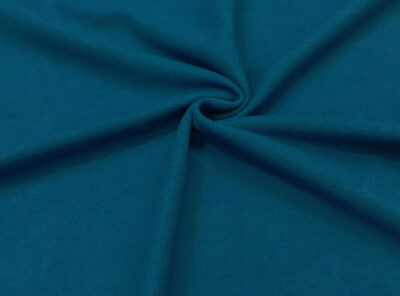 Drap morbido in lana tinta blu pavoneTessuto Drap di lana, prodotto a Biella, peso medio e aspetto morbido, lucido, a pelo liscio e setoso. Perfetto per realizzare capi invernali eleganti come capi spalla e mantelle.