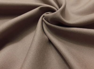 Gabardine di pura lana beigeGabardine di peso elevato prodotto a Biella con un filato di lana merino pettinato. Ha mano asciutta, compatta e resistente. Utilizzato nella realizzazione di abiti per donna dalle linee pulite e semplici, gonne diritte e capi spalla.