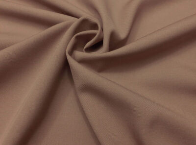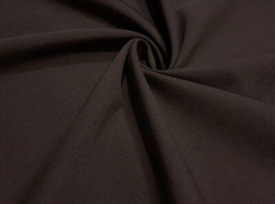 Gabardine in cotone marroneRealizzato con un filato di cotone pettinato di medio peso, questo tessuto di gabardine ha mano asciutta, compatta e resistente. Viene utilizzato per la realizzazione di abiti femminili dalle linee pulite e semplici, gonne, pantaloni e capi spalla.