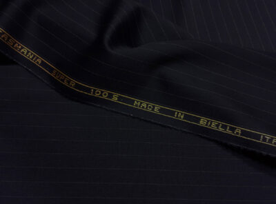 Tessuto Tasmania 100S in lana doppio ritorta blu scuro gessatoQuesto tessuto realizzato a Biella in lana di Tasmania, ha come caratteristica l’estrema sottigliezza della fibra e quindi il massimo della leggerezza. Adatto per abiti da uomo, ma anche per capi spalla femminili, pantaloni e abiti, si contraddistingue per morbidezza al tatto, resistenza, comfort e vestibilità.