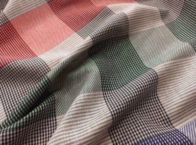 Tessuto in cotone e lino motivo a righe e quadri.Questo tessuto, in cotone e lino, tinto in filo (con colori quindi molto resistenti), è un tessuto leggero, liscio, compatto e allo stesso tempo morbido. Perfetto per confezionare camicie da uomo estive e camicie da donna.