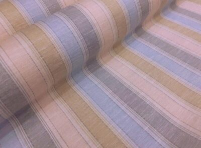 Tessuto per camicie a righe beige e celesteQuesto tessuto, tinto in filo (con colori quindi molto resistenti), è un tessuto leggero, liscio, compatto e allo stesso tempo morbido. Perfetto per confezionare camicie da uomo estive e camicie da donna.