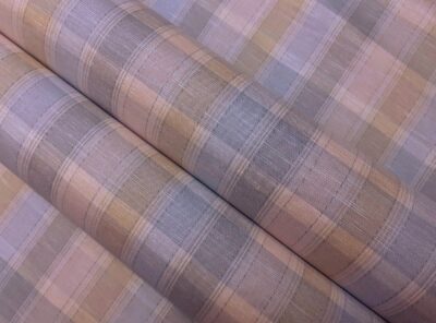 Tessuto per camicie a quadri beige e celesteQuesto tessuto, tinto in filo (con colori quindi molto resistenti), è un tessuto leggero, liscio, compatto e allo stesso tempo morbido. Perfetto per confezionare camicie da uomo estive e camicie da donna.