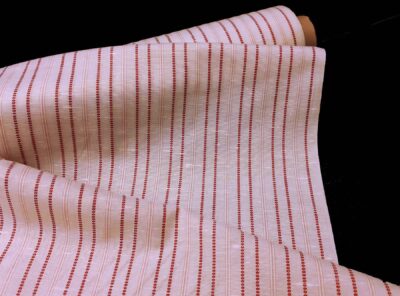 Tessuto per camicie effetto Shantung bianco a righe rosso scuroTessuto di cotone per camicie che riproduce l’ effetto “shantung “ caratteristico della seta